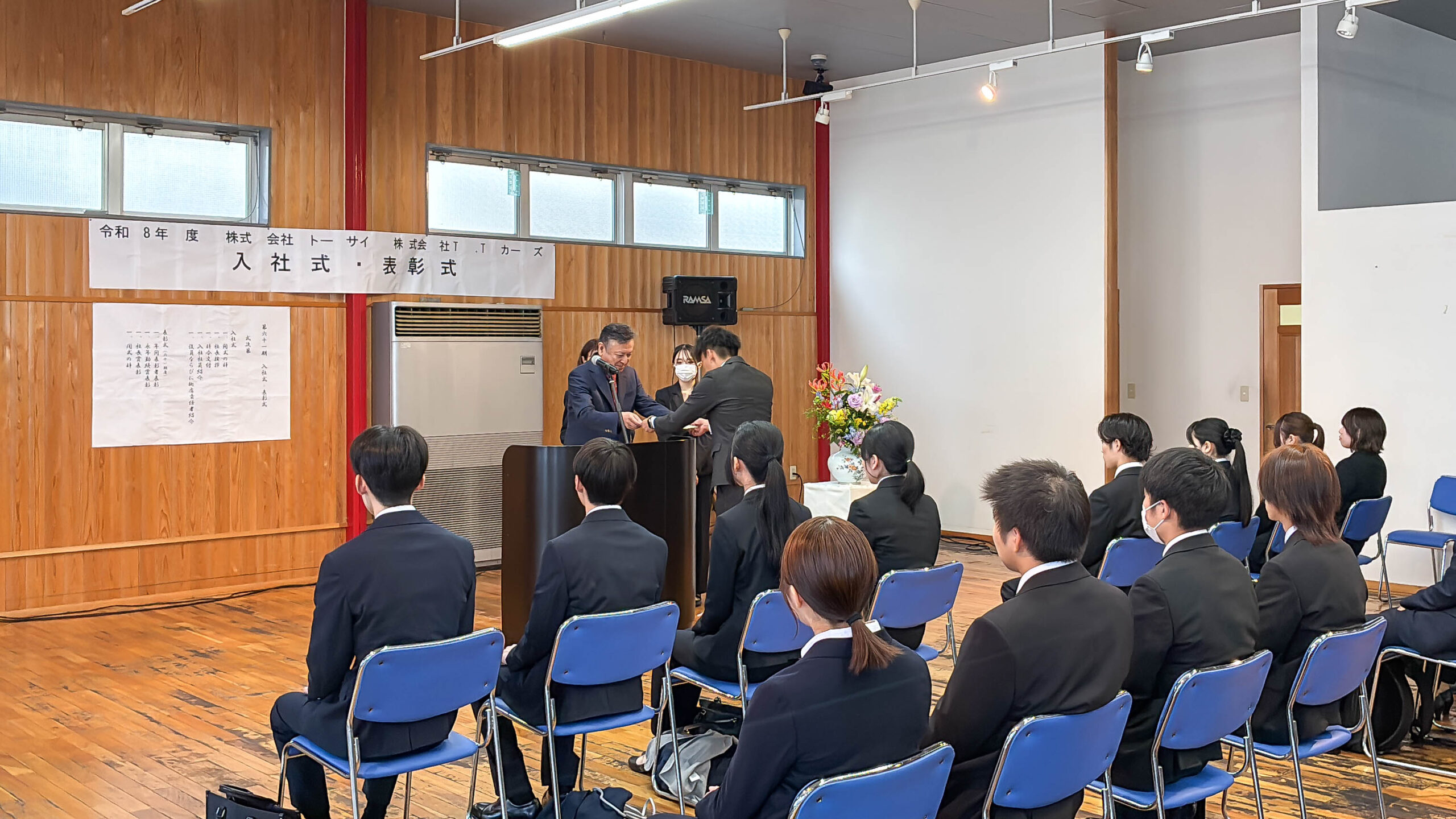 2026年4月1日、当社では新たな仲間を迎える入社式を執り行いました。 当日は少し緊張した面持ちの新入社員の皆さんでしたが、一人ひとりの表情からは、これから始まる社会人生活への期待と意欲が感じられました。 式では社長よりお祝いの言葉があり、新しいスタートを切る大切な一日となりました。 また、同日に表彰式も執り行い、日頃の業務において優れた成果を上げた社員の功績を称えました。受賞者の取り組みは、他の社員にとっても大きな刺激となり、組織全体のさらなる成長につながるものと期待されます。 これからそれぞれの配属先で、多くの経験を積みながら成長していくことを心より期待しています。 私たちも共に歩み、支え合いながら、より良い会社づくりを目指してまいります。 新入社員の皆さん、改めてご入社おめでとうございます!